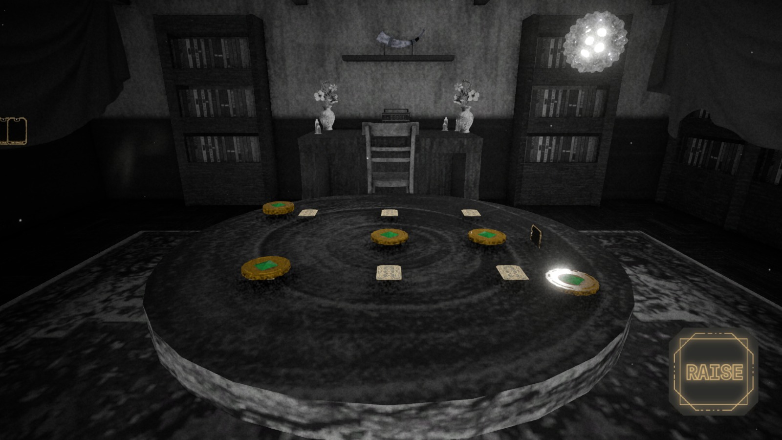 En los oscuros callejones de Innsmouth se pueden escuchar rumores de un duelo de cartas que invocan poderosas entidades cósmicas numeradas del 1 al 12. Cada jugador apuesta sus recuerdos en monedas talismanes. El ganador roba 6 recuerdos, ganando la experiencia de sus enemigos.